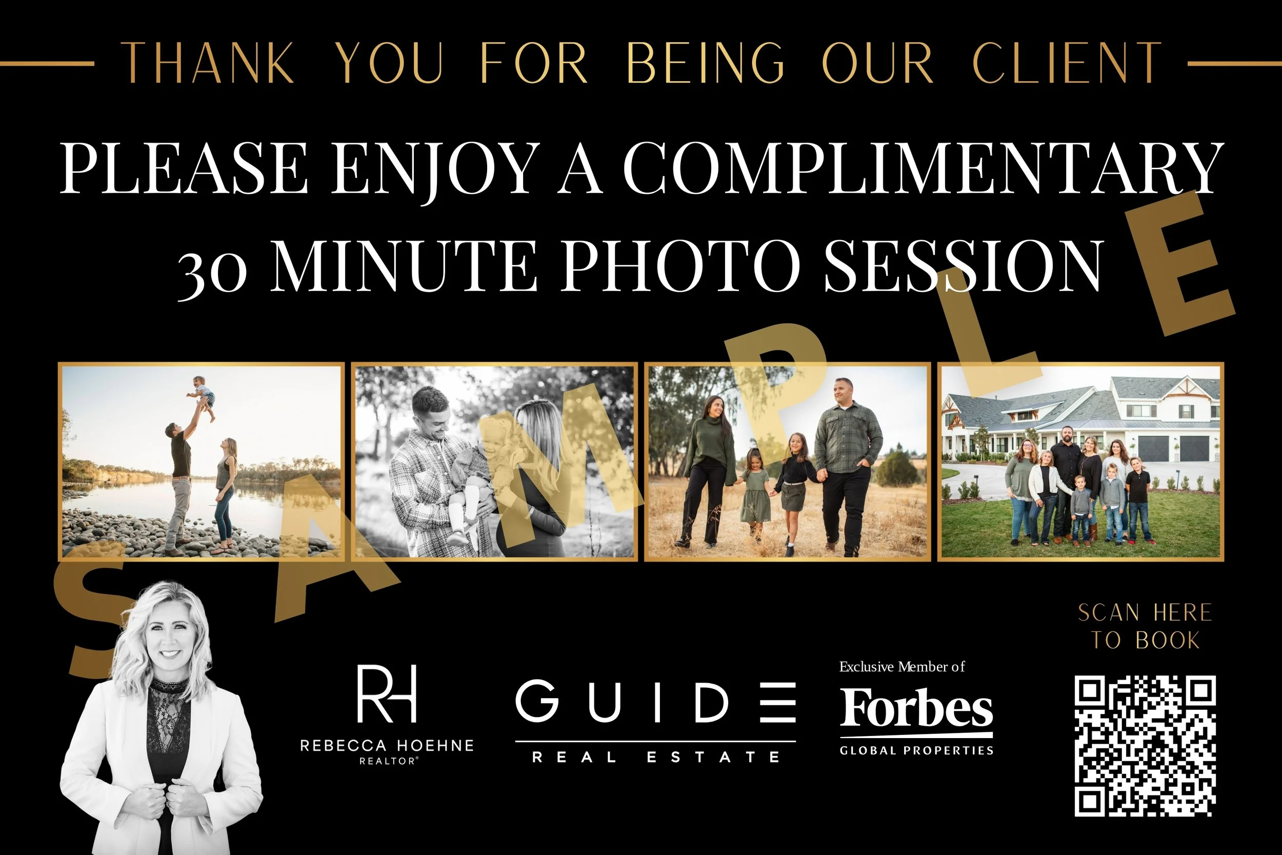 With 20 years of experience and having shot thousands of photos shoots all over the world, you can rest assured that your clients are going to be well taken care of with professional and friendly service. Your clients will be able to easily schedule their pre-paid 30 minute photo session around the Sacramento region. We will provide them with an online proofing gallery and ability to download the high resolution non-watermarked photos free of charge. Great for all types of photo shoots!